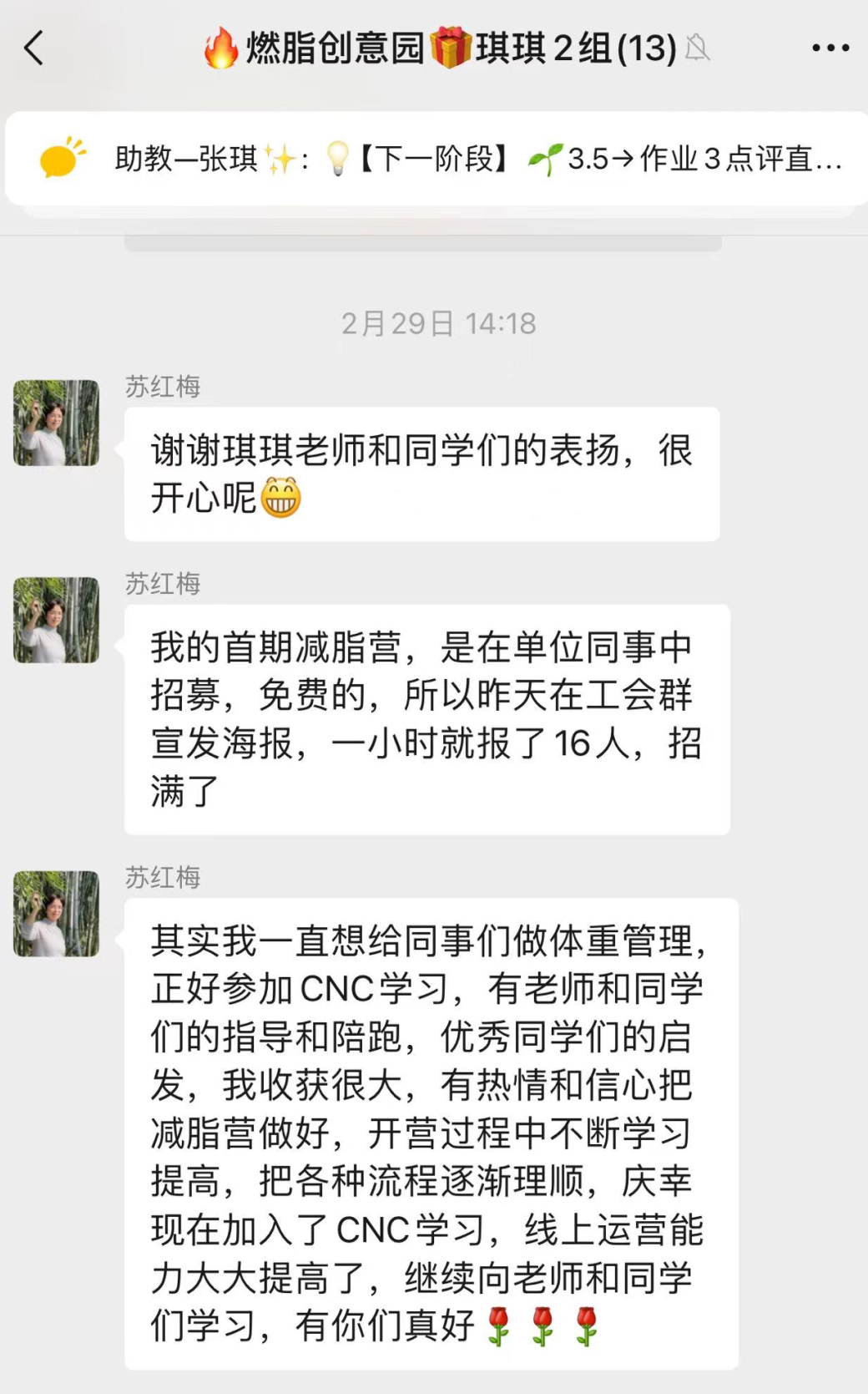 参加减脂营后,我非常感动,不禁在群里分享感受